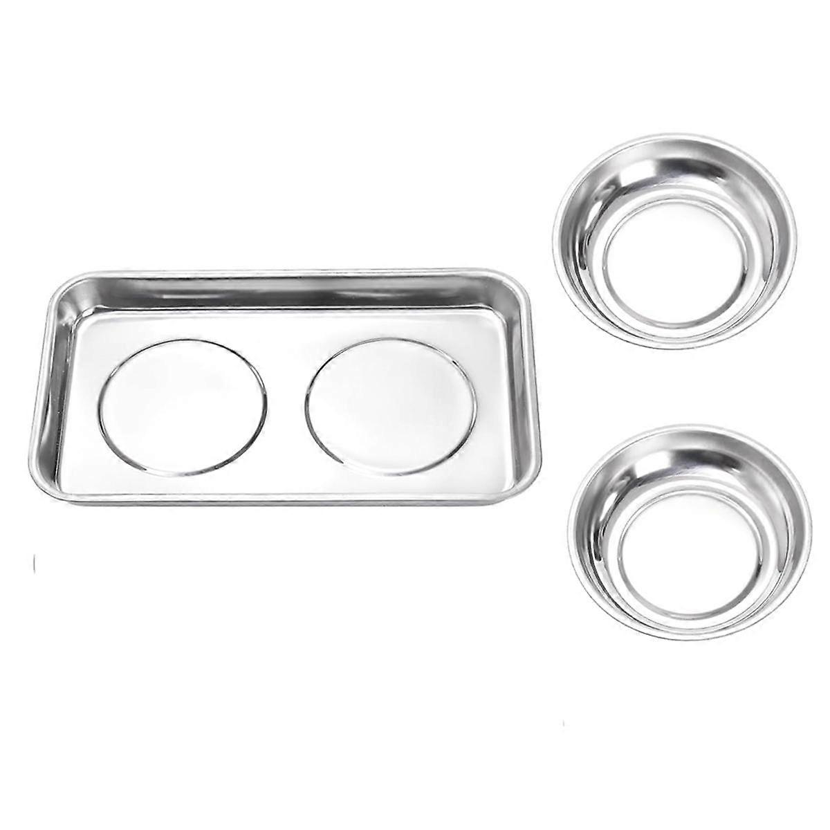 3 Pcs Magnetic Parts Tray Set, Stainless Steel Heavy Duty Square and Round Extra Strong Magnetic Tool Trays Holder