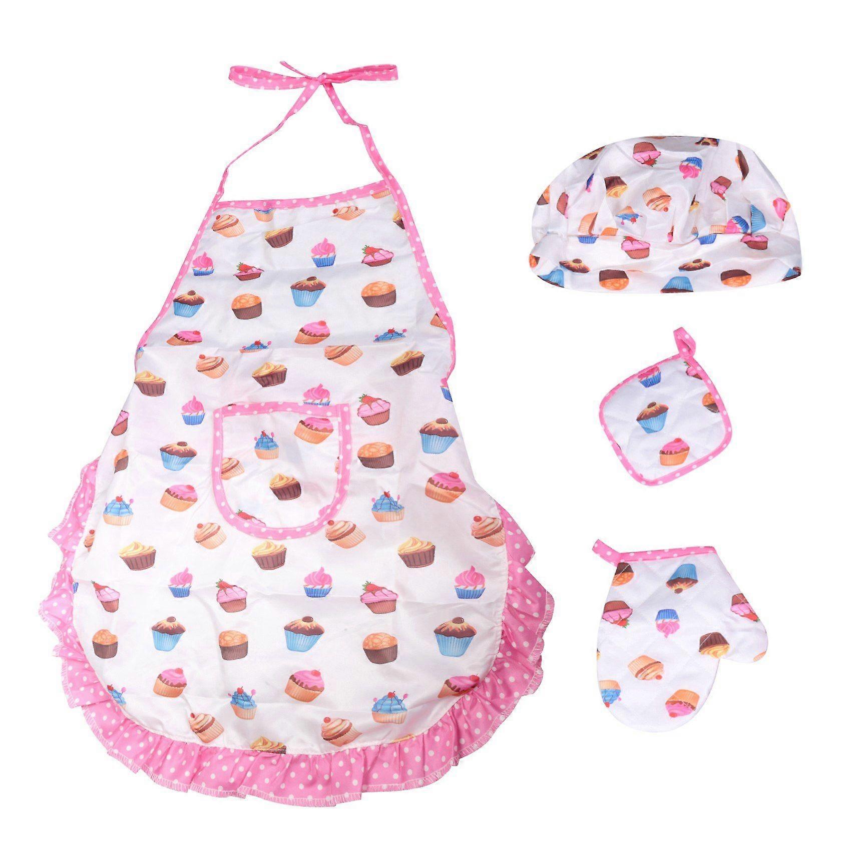 4Pcs Kids Cooking and Baking Set Includes Apron for Little , Chef Hat, for Toddler Dress Up