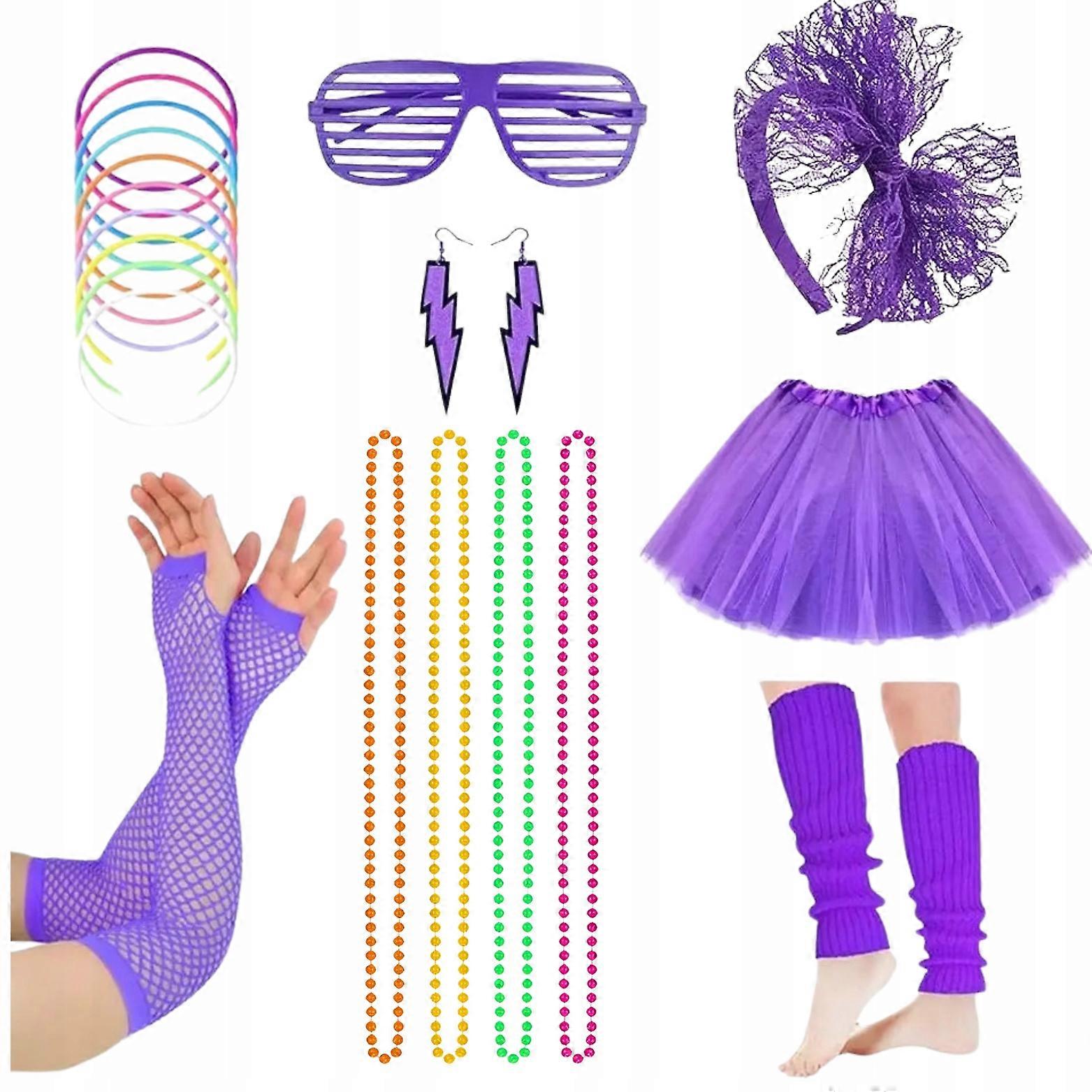 Outfits Set Lata 80 Neon Earrings Necklace Disco Skirt Fiot 8in1
