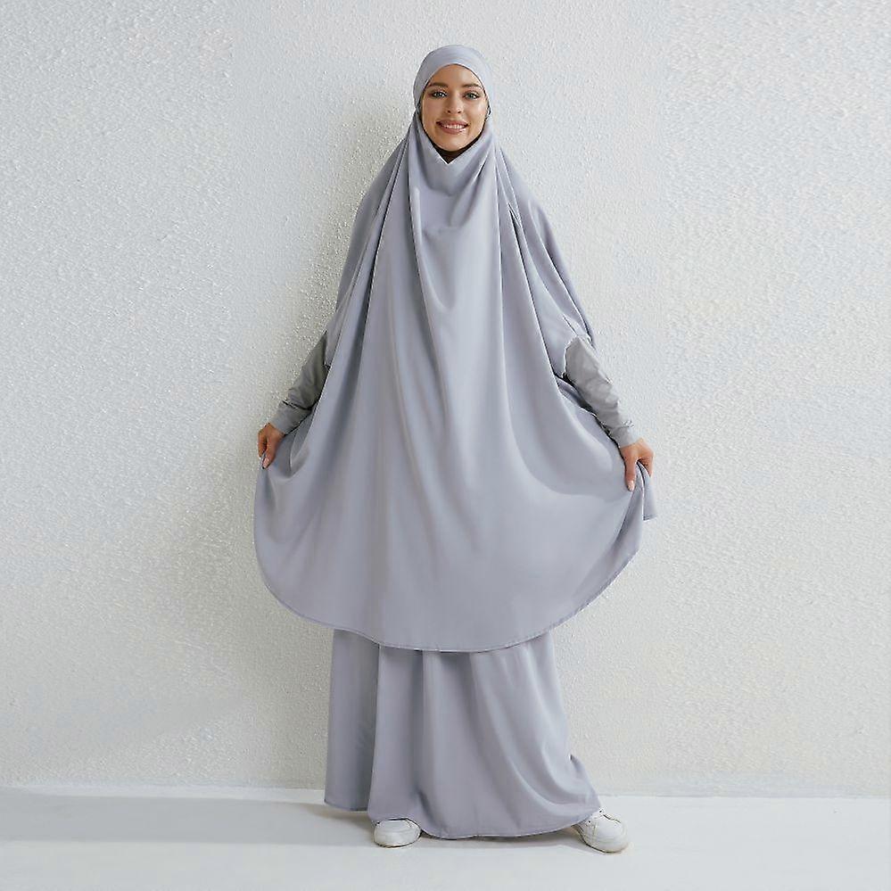 Muslim Sets Two Pieces Prayer Clothing Long Hooded Smocking Sleeve Shirts Hijab Loose Maxi Skirts Elastic Waist Women Abaya Sets