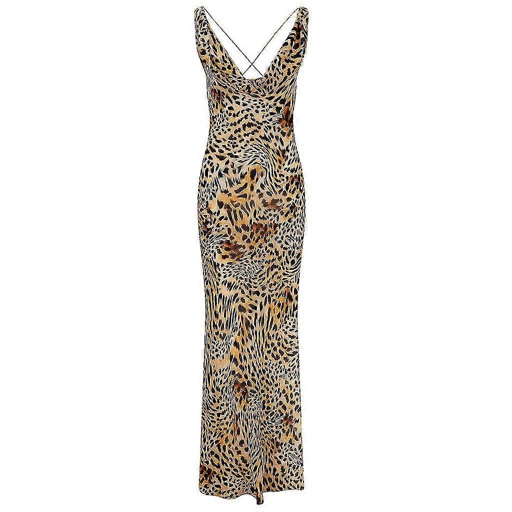 Sexy Side Split Bikinis Cover Up For Women Leopard Print Backless Beach-dress