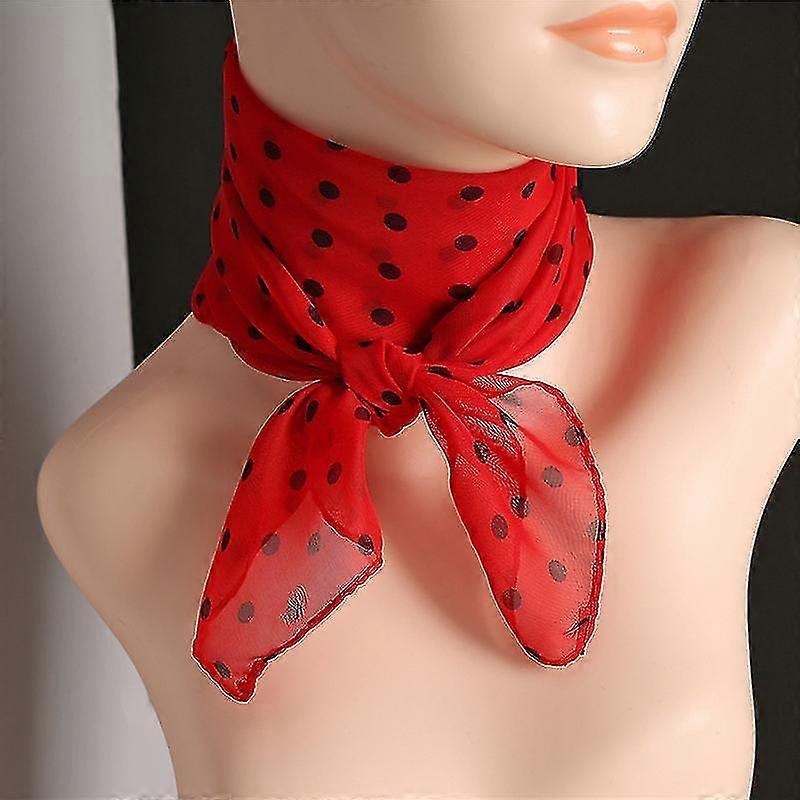 Small Square Chiffon Print Polka Dot Scarf Silk Scarf Scarf 1 Red