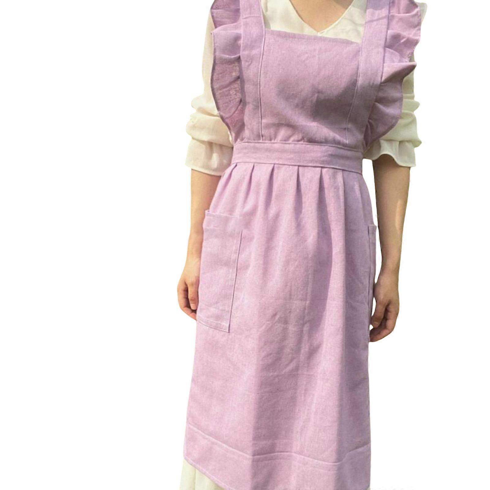 Ruffle Baking Apron Plain Work Apron with Pocket Women Apron Cooking Apron Serving Apron for Kitchen Bakery Restaurant Purple