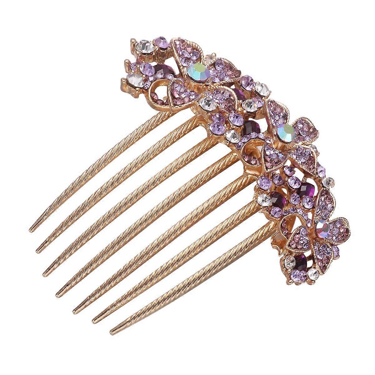 Rhinestone Hair Comb Crystal Hair Insert Comb Elegant Hairpin Women Headpiece Purple