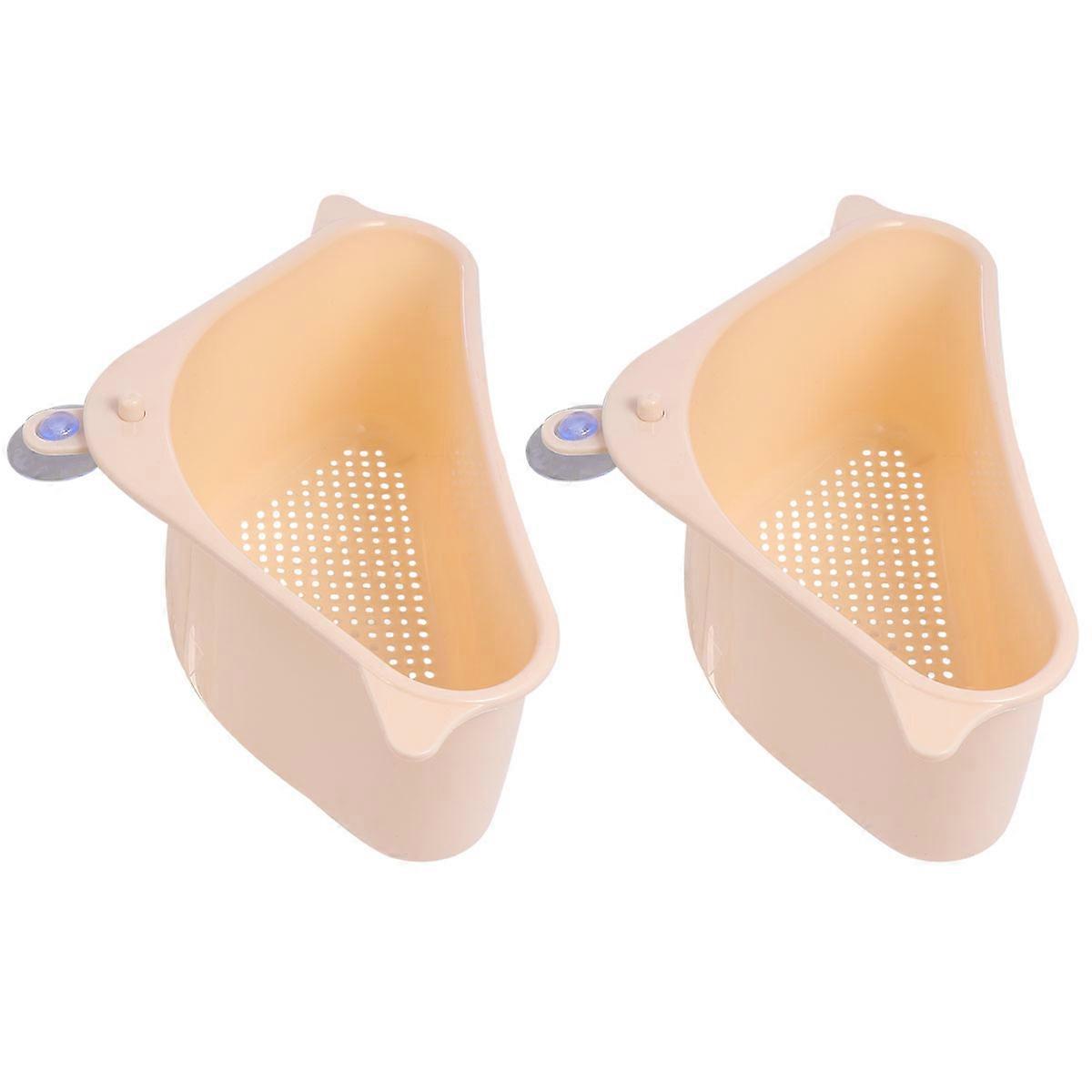 Suction Cup Sink Garbage Basket 2Pcs Triangle Shape Ideal For Kitchen Supplies Beige Color Perfect For Efficient Drainage And Storage