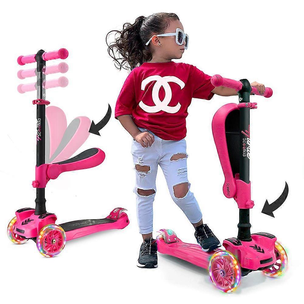 Hurtle 3 Wheeled Scooter for Kids 2 in 1 Sit Stand Child Toddlers Toy Kick Scooters w Flip out Seat, Adjustable Height, Wide Deck