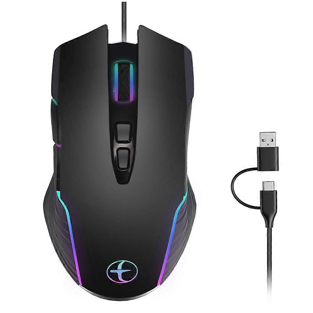 USB/Type-C Ergonomic Wired Gaming Mouse with RGB Backlit, Moving Mouse Jiggler Keeps Computer Awake 4 Adjustable DPI