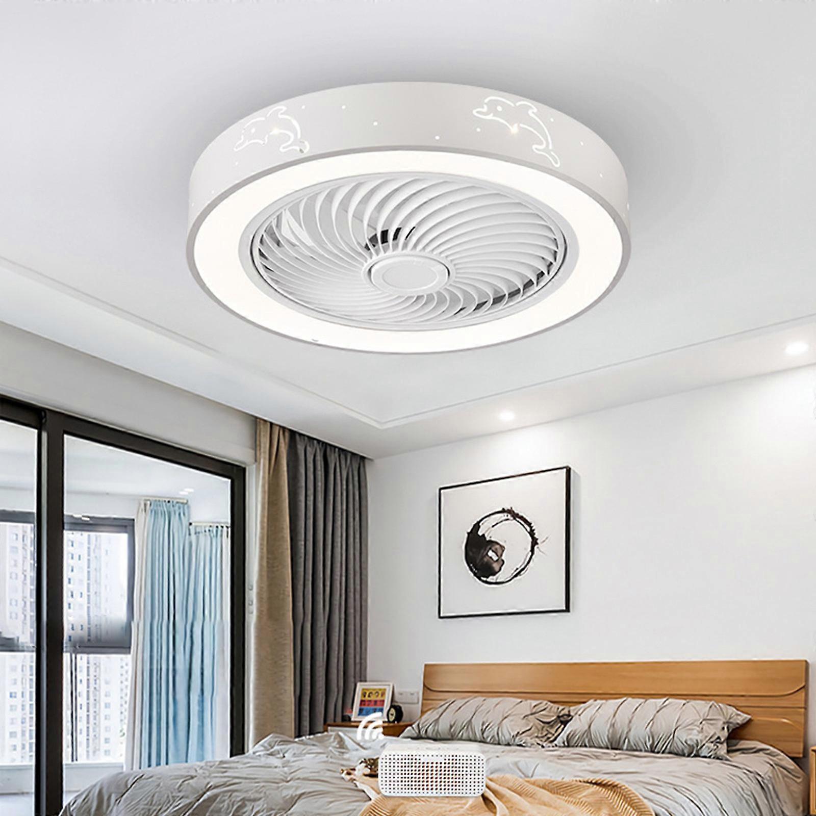 Ceiling Fan With Lights, Remote Control Fully Dimmable Caged LED Fixture, Semi Mount Enclosed Ceiling Fan For Low Ceiling Room (19.7in, White)