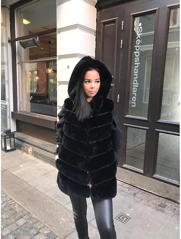 mycket mjuk Faux pälsväst Luvtröja Svart KVINNOR