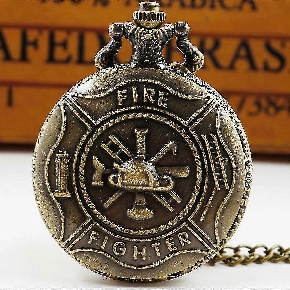 Vintage Exquisite Firemen ToolsCarved High Quality Quartz Pocket Watch Necklace Pendant Gifts For Women Or Man with Fob Chain