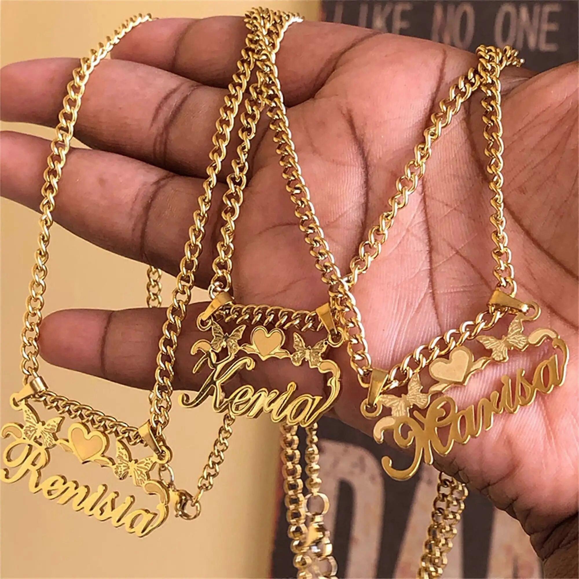 VishowCo Custom Butterfly Name Necklace For Women Stainless Steel With Cuba Chain Glod Nameplate Pendant Jewelry Gift