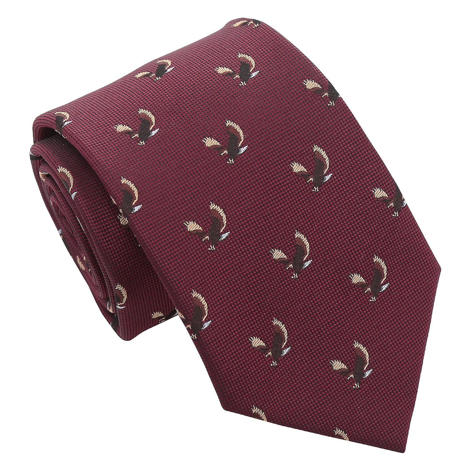 Burgundy Golden Eagle Bird Embroidered Tie