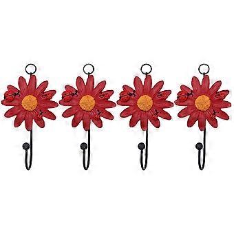 Wall Hangers Resin Hooks Decorative Hooks Daisy for Home 8Pcs Red