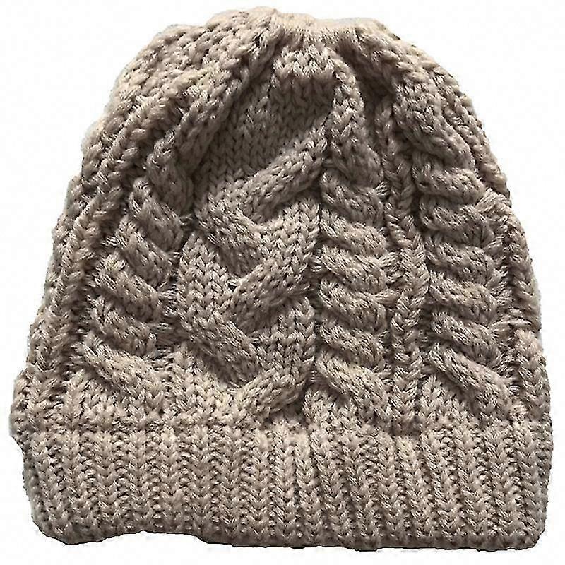 Women's Knitted Stretch Beanie for Messy Bun & Ponytail, Winter Warm Hat