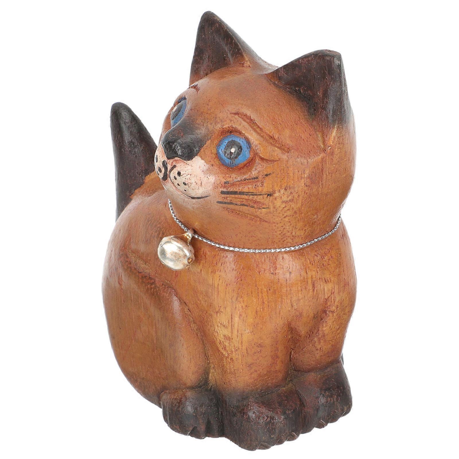 Wooden Carving Cat Statue for Decoration Use 3Pcs Coffee Color Figurines