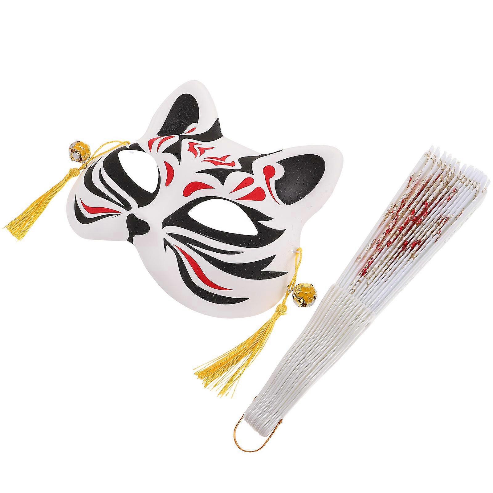 Workmanship Fox Shape Mask And Fan Japanese Costume Accessory 1Set