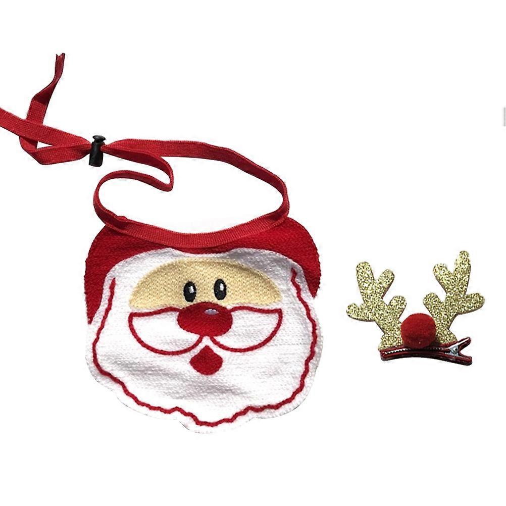 Dog Christmas Bib Pet Collar with Adjustable 2Pcs Triangle Scarves